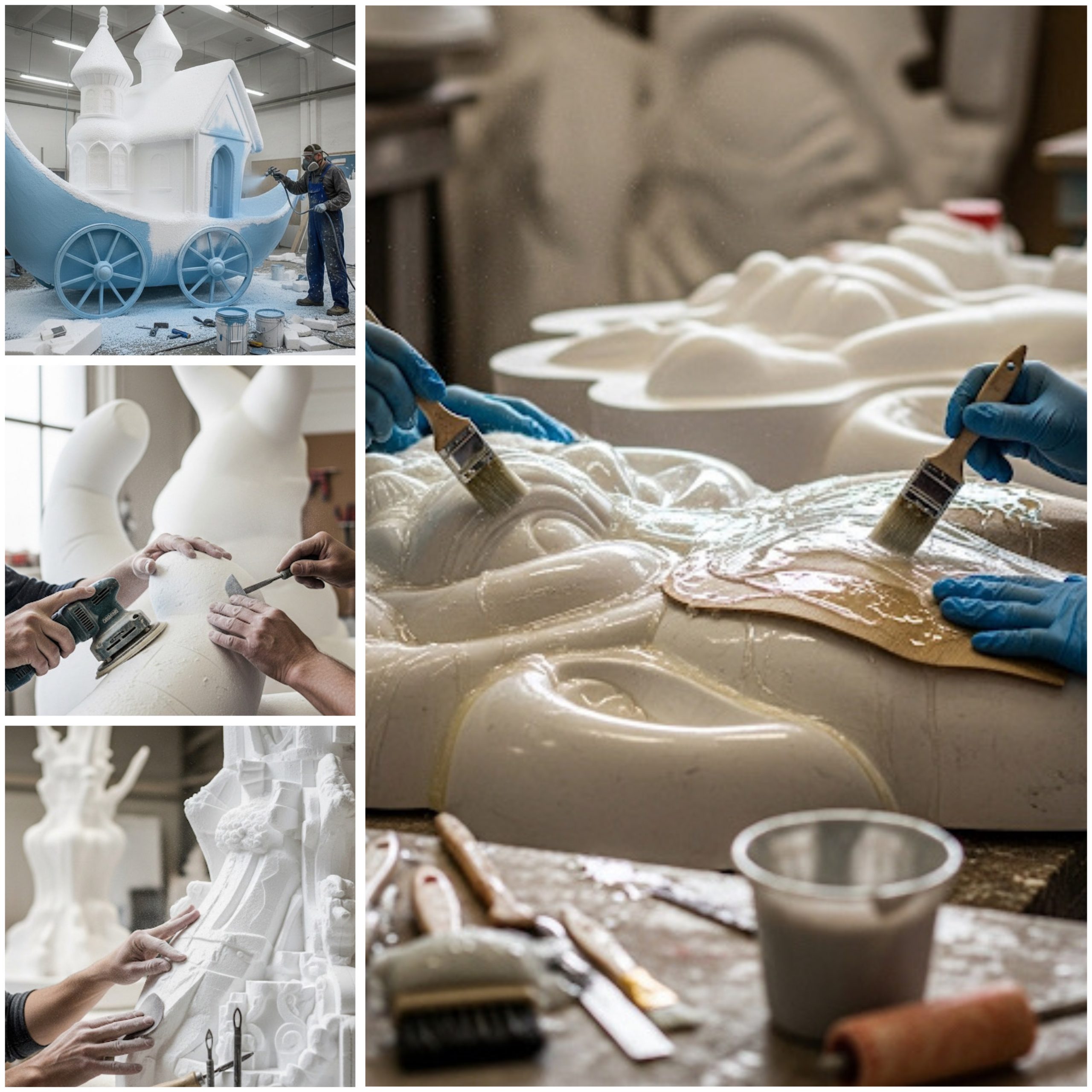 Unsere visionären Ideen können aus diversen Materialien realisiert werden, darunter glasfaserverstärkter Kunststoff (GFK), beschichteter Polystyrol Hartschaum (EPS), Metall, Holz und Beton.