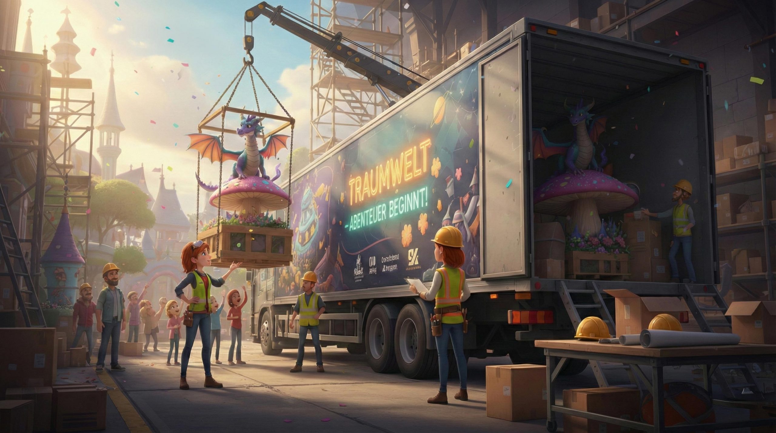 Große Erlebniswelten erfordern eine perfekte Planung. Wir organisieren den gesamten Transport und die Montage-Teams so, dass sie exakt in deine Zeitfenster passen.