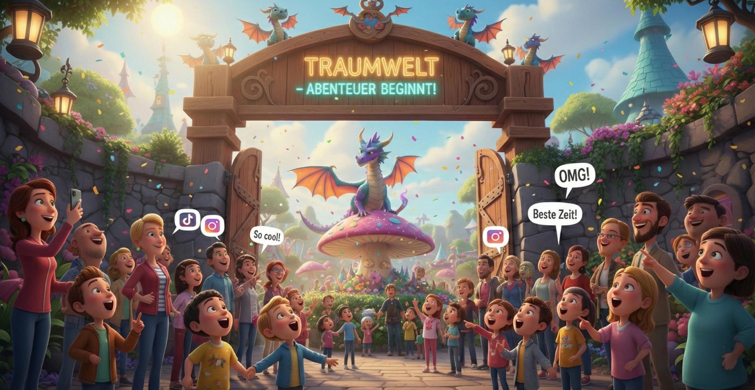 Dann öffnet der Park seine Tore. Kinder bleiben staunend stehen, Erwachsene greifen sofort zum Handy und neue Fotopoints entstehen überall. Deine Dekoration wird zur Bühne und der Park zur Erlebniswelt.