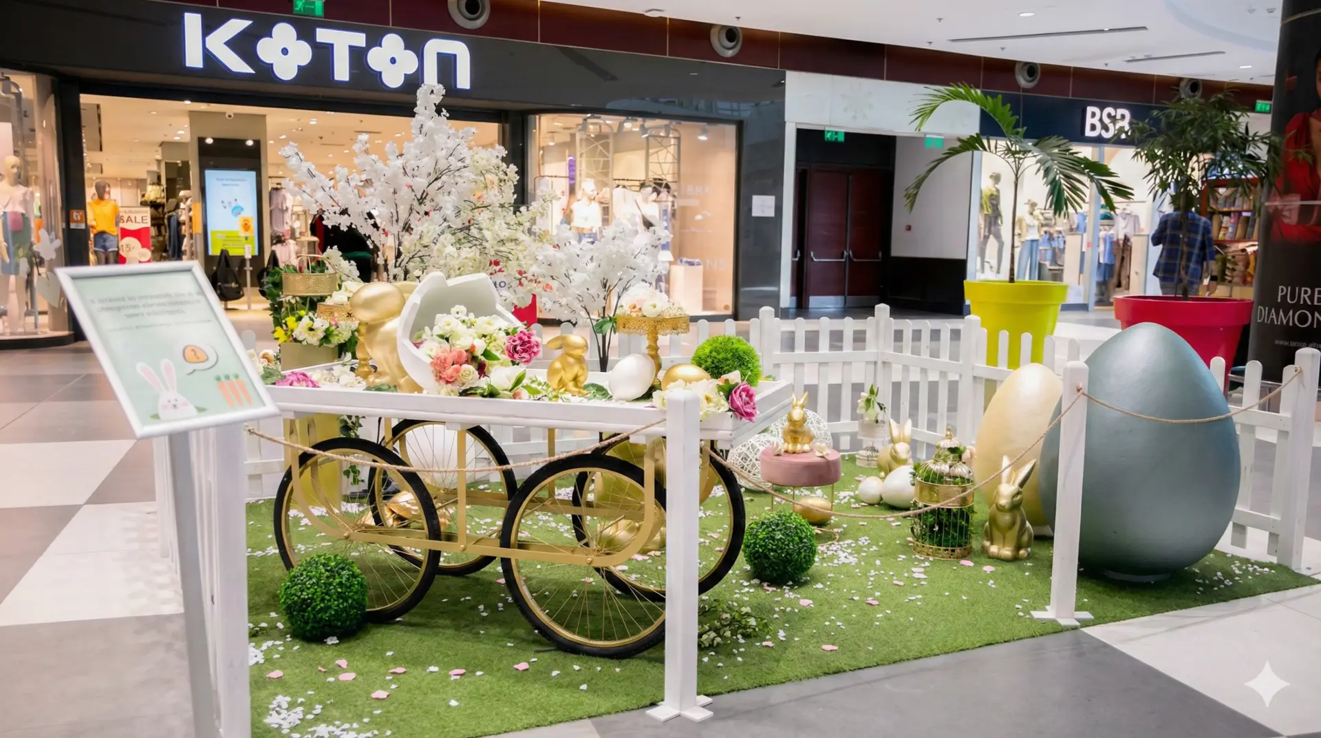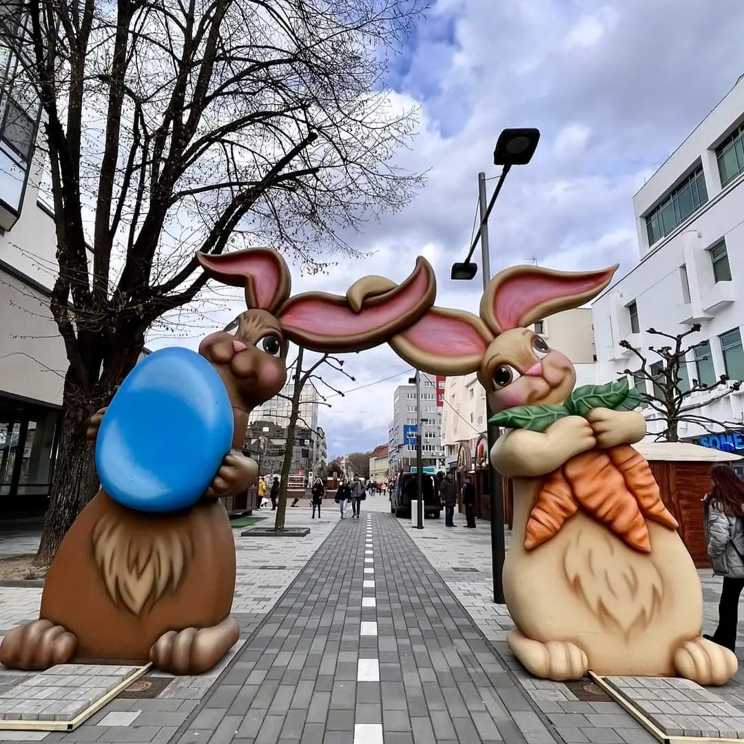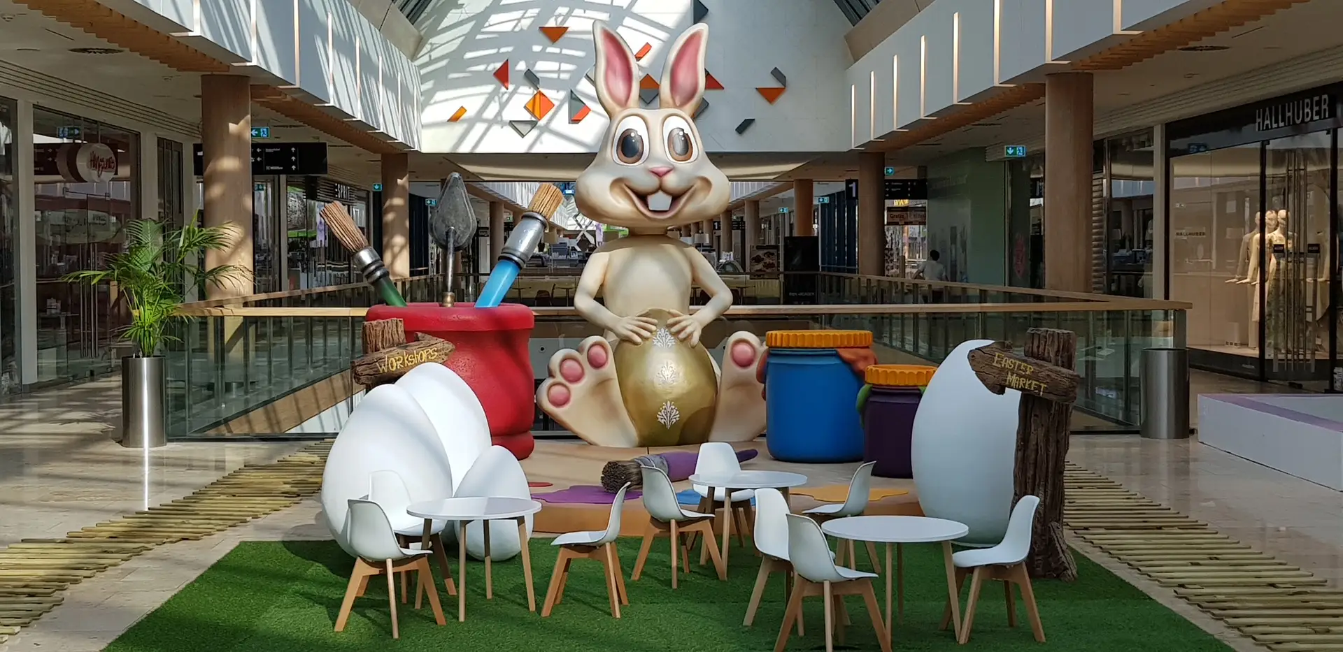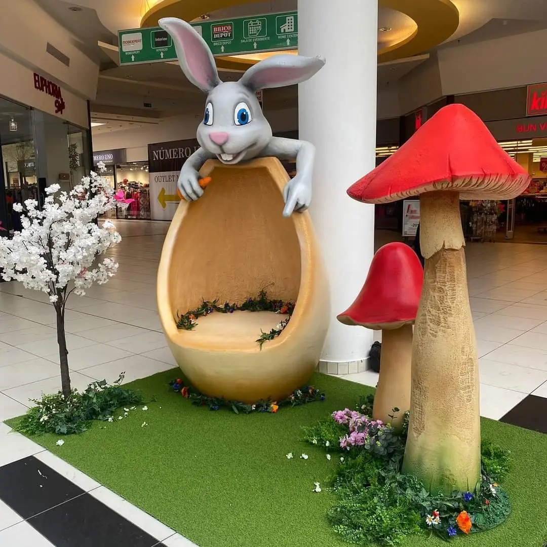 Die Frühlingswelten: Lebensgroße Osterhasen-Skulpturen, florale Deko-Elemente und fröhliche Inszenierungen, die ein Lächeln auf die Gesichter Ihrer Besucher zaubern.
