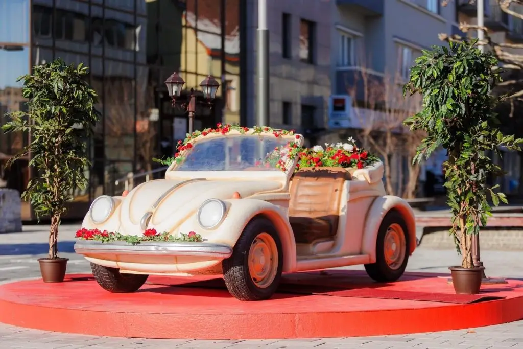 Die Details: Maßgeschneiderte Skulpturen (wie florale Bögen oder Bären) und stilvolle Sitzinseln, die Architektur und Plätze gefühlvoll in Szene setzen und zum Verweilen einladen.