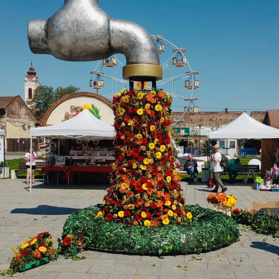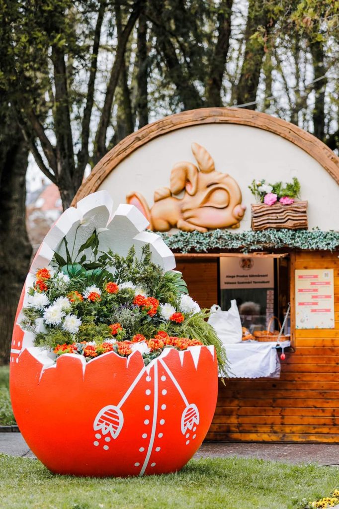 Die Wahrzeichen: Gigantische, kunstvoll gestaltete 3D-Ostereier und begehbare Frühlingsmotive, die als farbenfrohe und beliebte Fotopoints dienen.