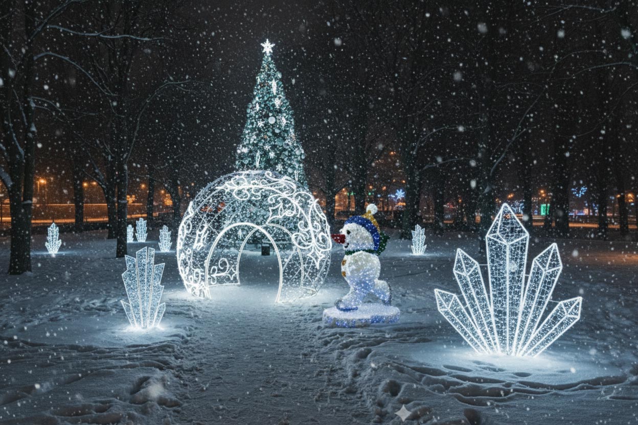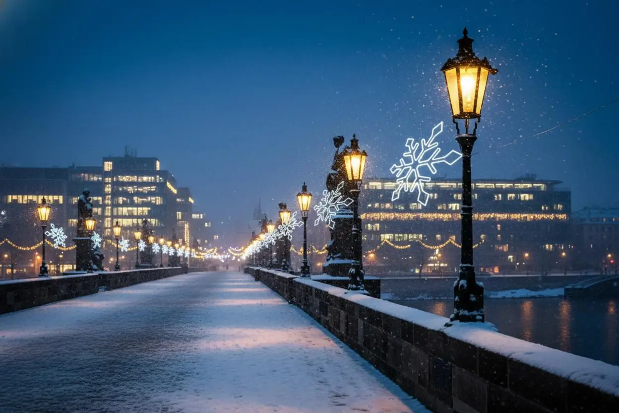 Der Winterhimmel: Prachtvolle Chandeliers, funkelnde Schneeflocken und weit gespannte Skyline-Motive, die Ihre Straßen überspannen.
