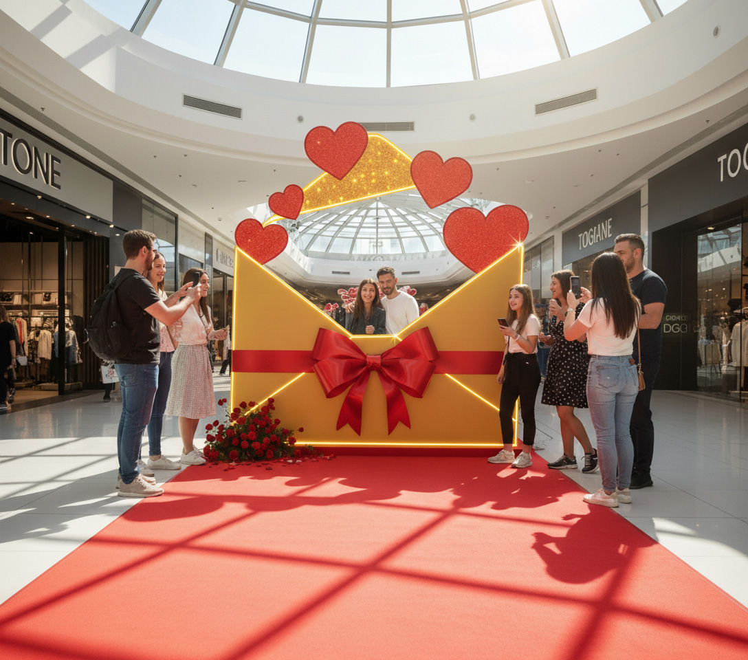 Die Fotopoints: Gigantische 3D-Herzen und leuchtende Schriftzüge („LOVE“), die als perfekte Kulisse für verliebte Paare und unvergessliche Erinnerungsfotos dienen.